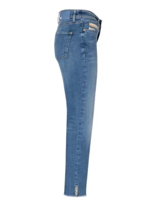 Cambio Rhona to propozycja marki w kategorii ekskluzywnych jeansów, które łączą casualowy charakter denimu z luksusową jakością i perfekcyjnym dopasowaniem. Ten popularny model wyróżnia się klasycznym krojem z pięcioma kieszeniami, lekko zwężanymi nogawkami i średnim stanem, który jest flattering dla większości typów sylwetki. Wykonane z wysokiej jakości, elastycznego denimu, Cambio Rhona idealnie dopasowują się do figury, modelując ją i podkreślając atuty. Charakterystyczne dla tego modelu są staranne wykończenia, takie jak precyzyjne szwy, wysokiej jakości metalowe detale i subtelne branding, które nadają tym jeansom luksusowy charakter. Dostępne w różnych odcieniach denimu - od jasnych, wiosenno-letnich wash'ów po głębokie, intensywne blue i black denim - Cambio Rhona to wszechstronny element garderoby, który można stylizować na wiele sposobów, od casualowych zestawień po bardziej eleganckie, smart-casual looki.