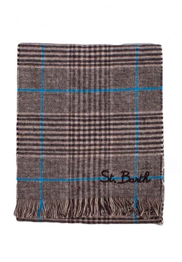 Szal autorstwa cenionej marki Mc2 Saint Barth. Model z wyszytym logo oraz w całości ozdobiony stylową kratą. Niezwykle miły w dotyku oraz ciepły, dzięki wyjątkowej mieszance bawełny wraz z wełną. Szal uzupełni Twój strój w chłodniejsze dni.