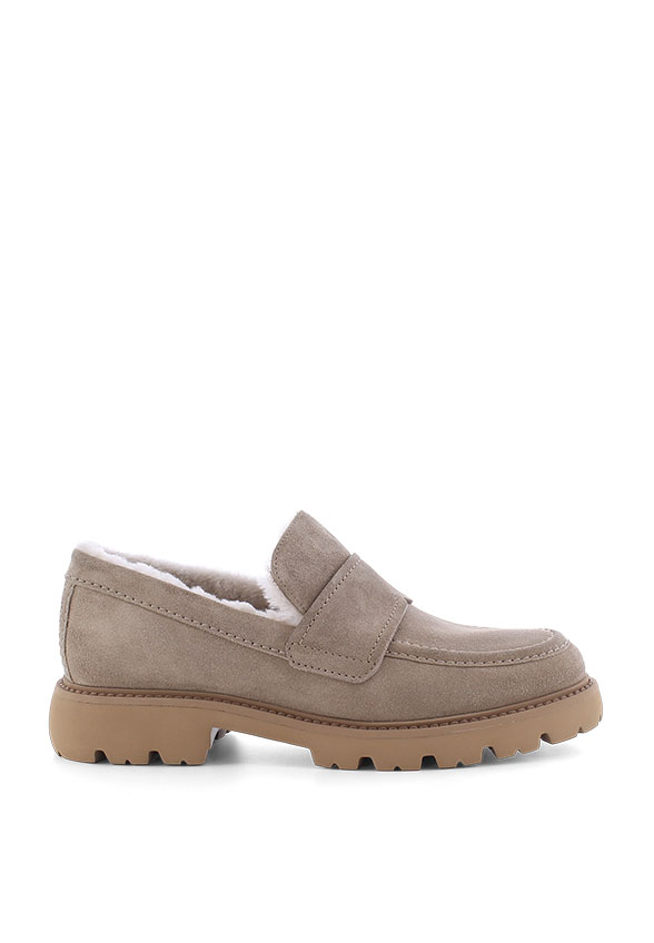 Bądź na bieżąco zgodzie z aktualnymi trendami, za sprawą modnych loafersów PRINT. Szczególną cechą modelu jest przytulna, futrzana wyściółka jagnięca. Dzięki temu możesz nosić swoje ulubione buty również jesienią. Tonalny wygląd w klasycznym beżu doskonale współgra z aksamitną skórą. Lekka podeszwa z bieżnikiem, gwarantuje wyjątkowy komfort noszenia.