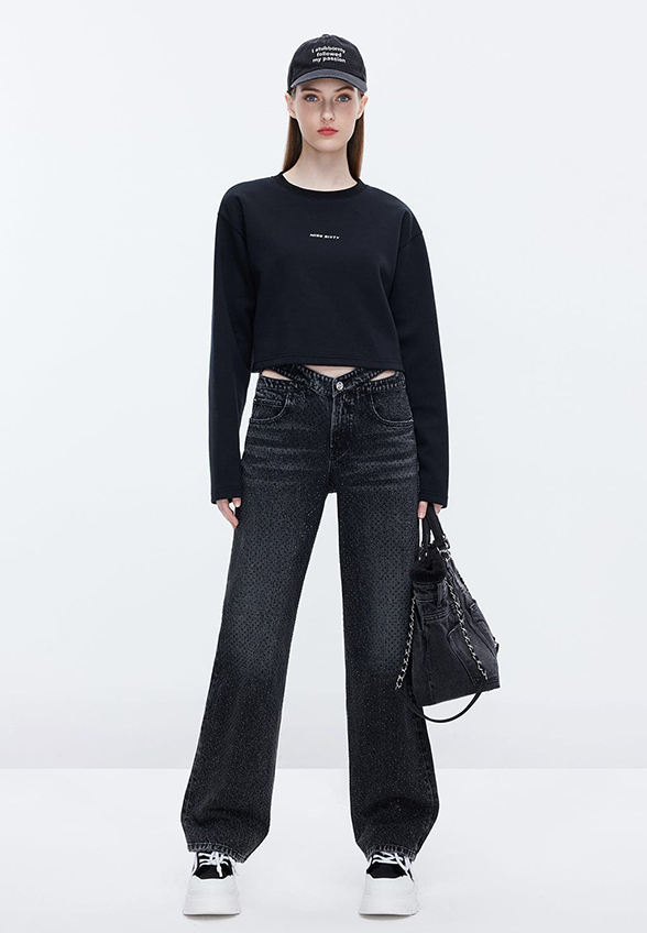 Utrzymana w trendach krótka bluza wykonana z mieszanki bawełny, zapewniająca doskonałe odprowadzanie wilgoci i oddychalność, gwarantując niezrównany komfort podczas noszenia. Nowoczesna architektura w stylu ulicznym, charakteryzująca się pudełkową krótką długością, rozpoczynającą nowy sezon odważną formą. Klasyczna czarna barwa doskonale będzie komponować się z jeansowymi elementami garderoby, dodając wyjątkowej energii stylizacjom.