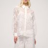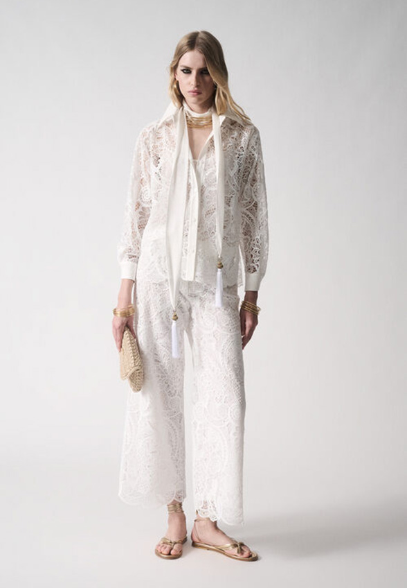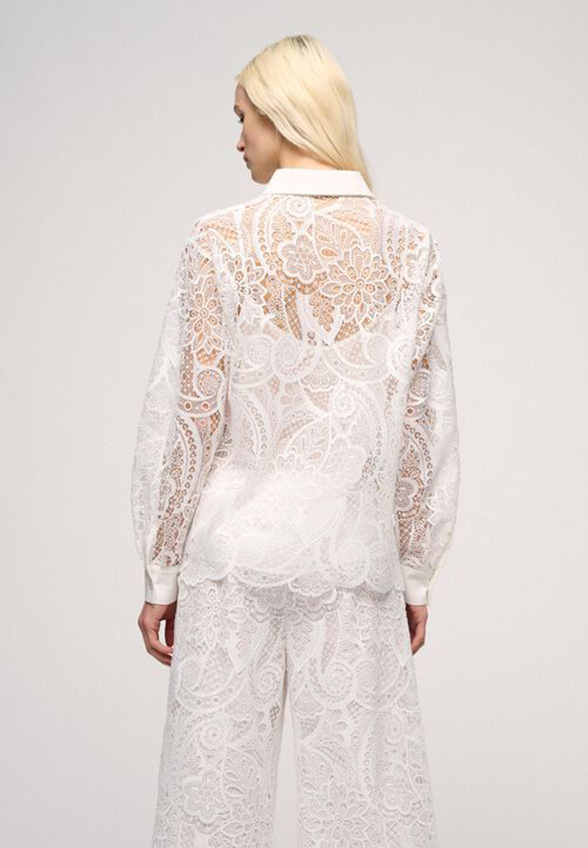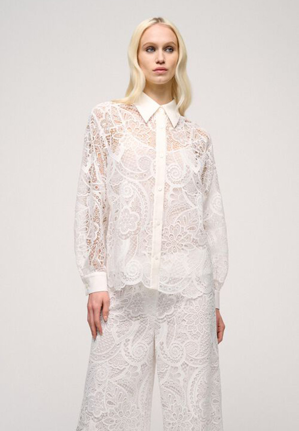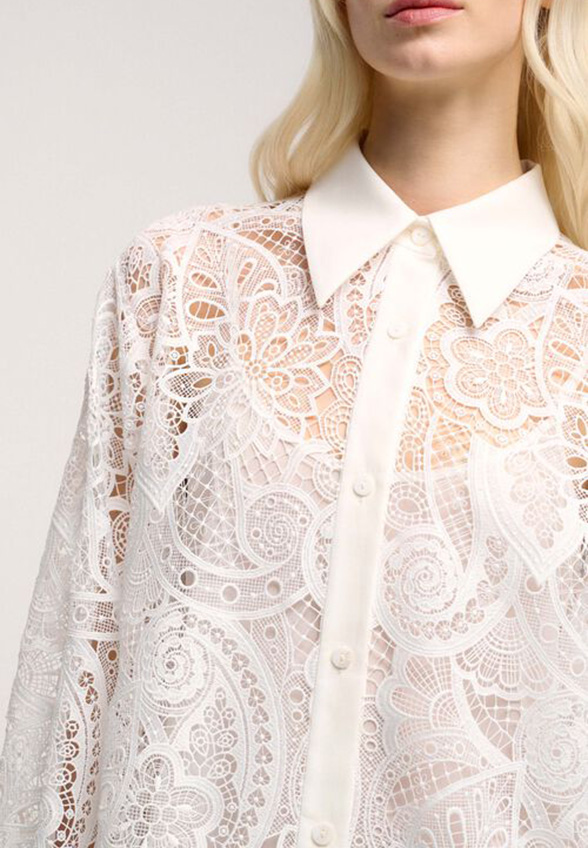 Elegancka koronkowa bluzka we wzór paisley, z gładkim kołnierzykiem, dopasowanymi guzikami i rękawami z mankietami. Bluzka posiada wewnętrzną podszewkę. Regularny krój.