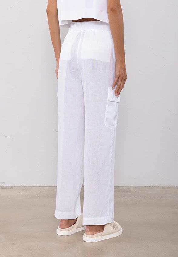 SPODNIE CARGO Z CZYSTEGO LNU BIAŁE