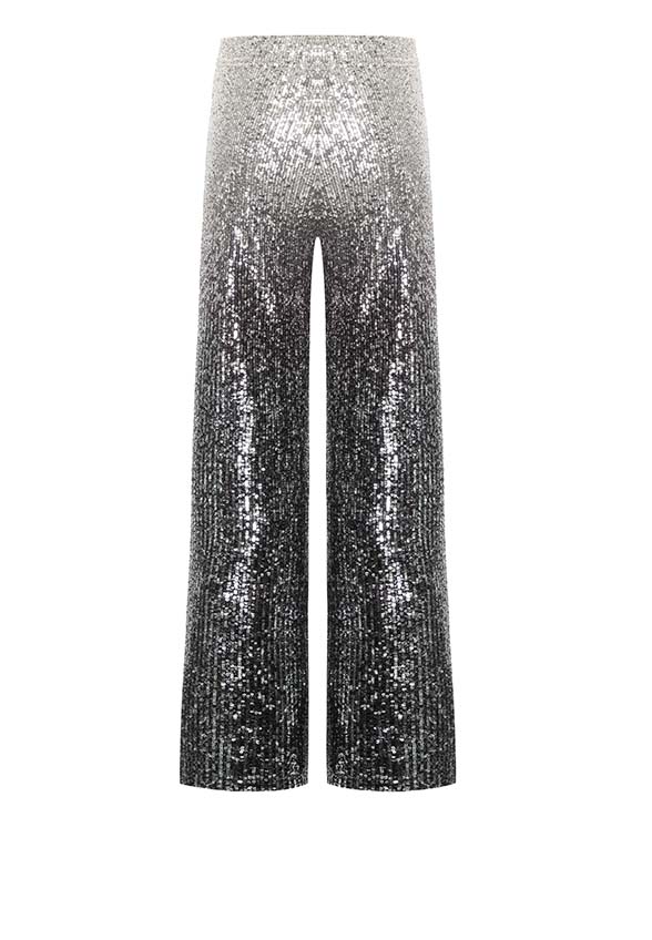 - Szerokie nogawki pokryte cekinami z efektem gradientu