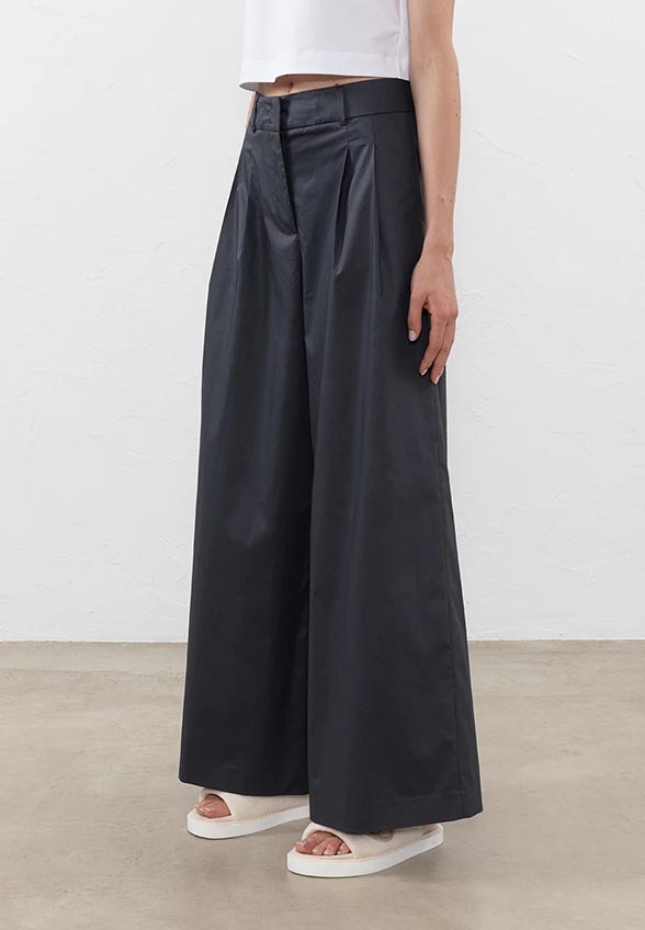 SPODNIE SZEROKIE Z SATYNY BAWEŁNIANEJ CZARNE