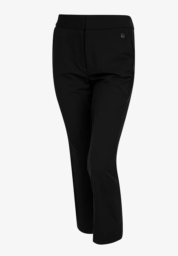 Nowoczesne spodnie z lekko rozszerzanymi nogawkami z lekkiego materiału. Posiadają dwie klasyczne kieszenie z rozcięciem z przodu i podłużne szwy z tyłu spodni oraz klasyczny pas z haftkami, bez szlufek na pasek.