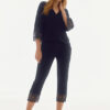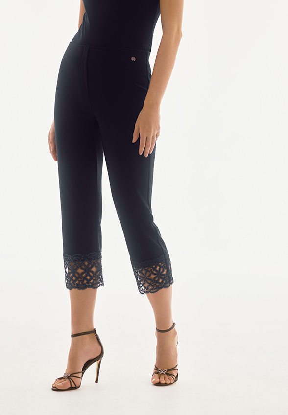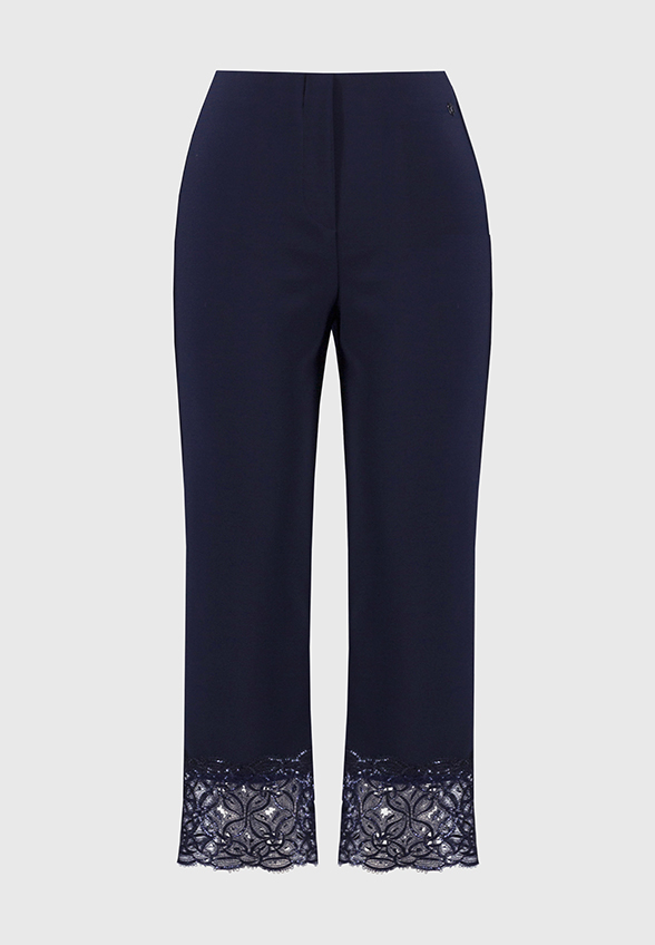 Spodnie z Jedwabistej Dzianiny z Koronką Granatowe