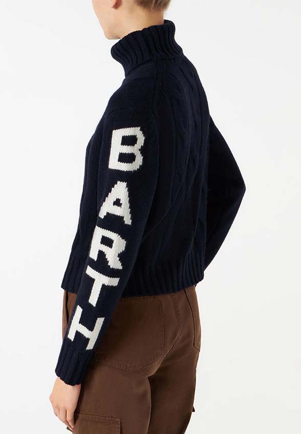 Wyjątkowy projekt swetra autorstwa marki MC2 Saint Barth. Dzięki mieszance najwyższej jakości materiałów w tym wełny, kaszmiru oraz wiskozy, zapewnia niezrównany komfort przyjazny dla skóry oraz gwarantujący ciepło w chłodne dni. Forma o warkoczowym splocie, zdobione kontrastowymi napisami rękawy oraz nieco skrócony fason stanowią wyjątkowy wyróżnik całości.